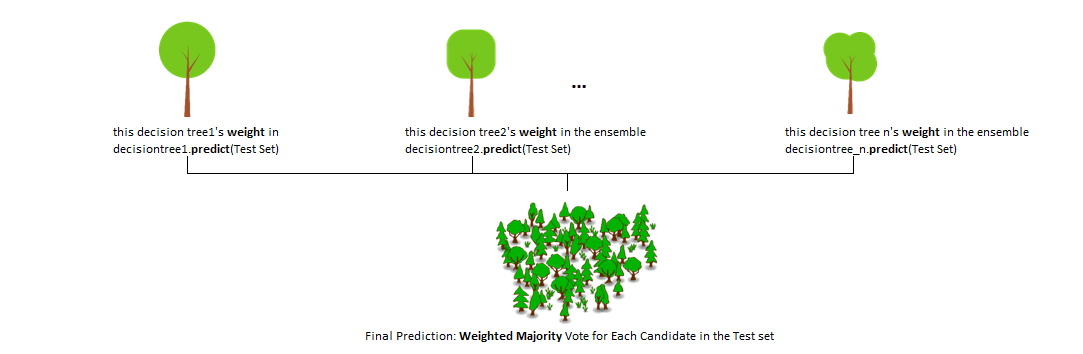 \\ \textrm{If it's wrong,} \: w^{new} = w^{old}*exp(\textrm{weight of this tree})